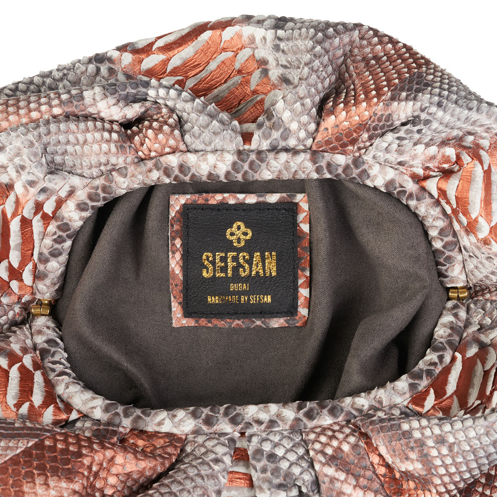 The luxury python skin CLOUD CLUTCH reflects SEFSAN heritage with a classic attitude. Softly structured, voluminous and infinitely sophisticated, the Bag is designed from luxurious natural skin. Made from luxurious leather, this signature bag from SEFSAN will be a close companion when the time to fly off to someplace comes.