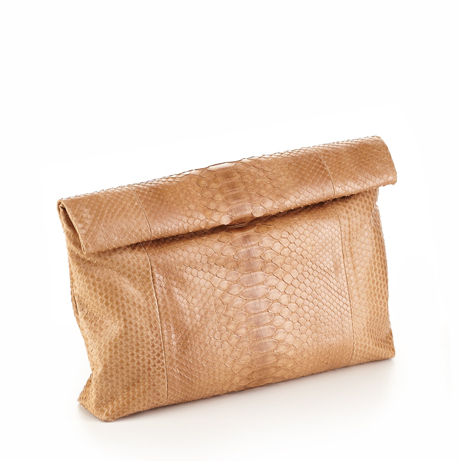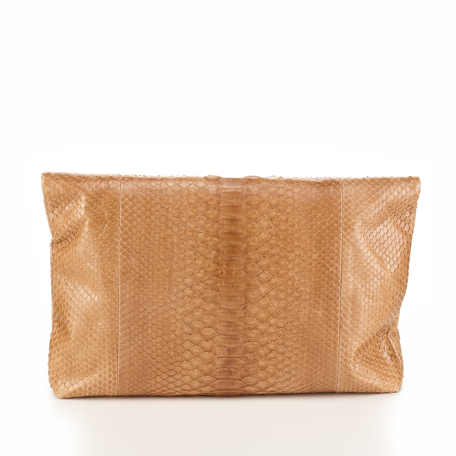 Leather clutch bag. Gathered seam detail on the front. Magnetic clasp closure.