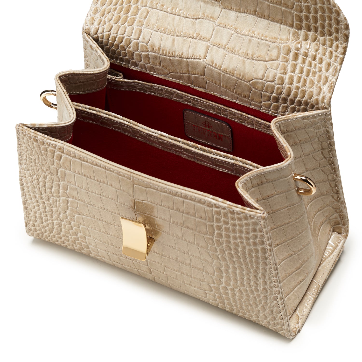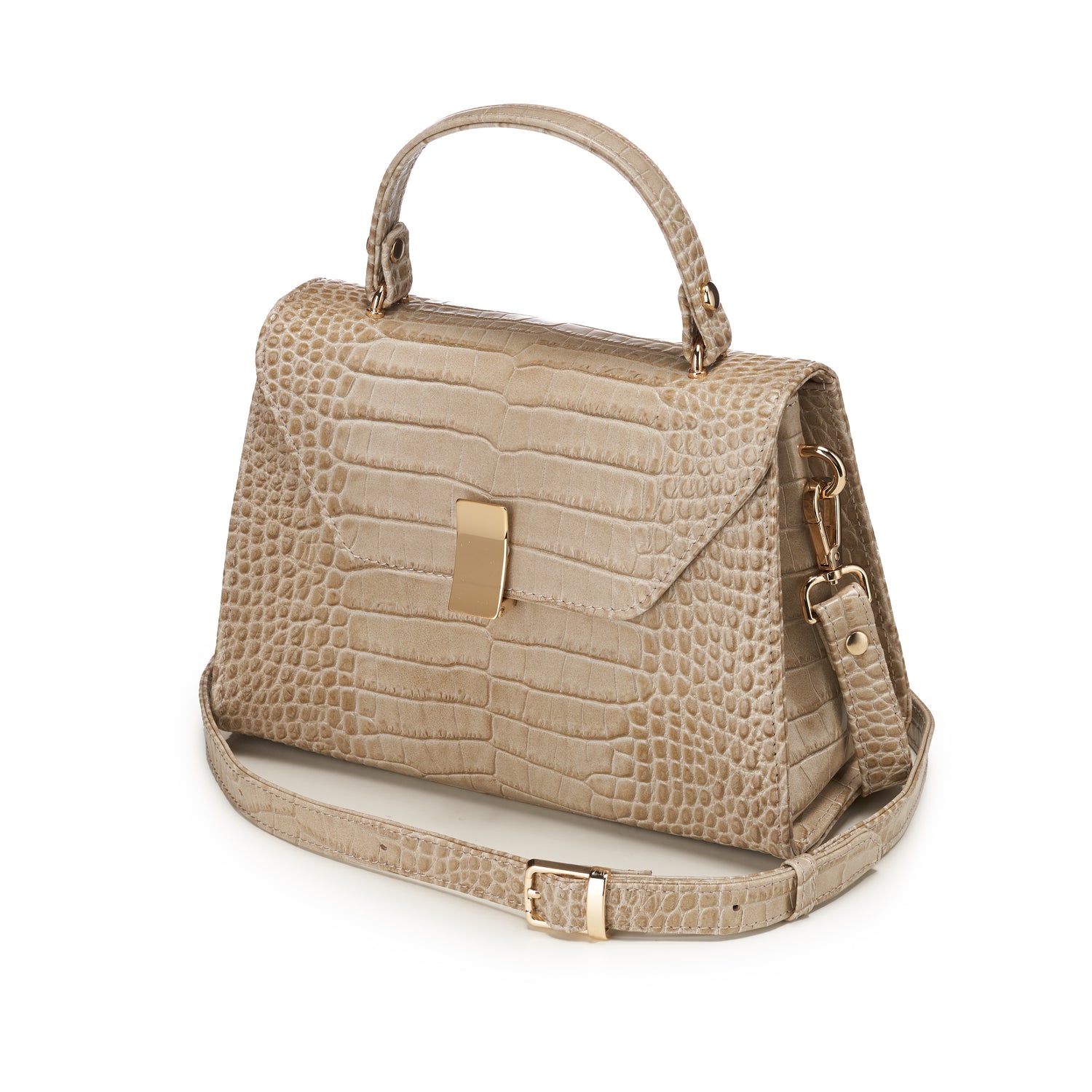 Handmade in fine calf leather with a crocodile skin effect.